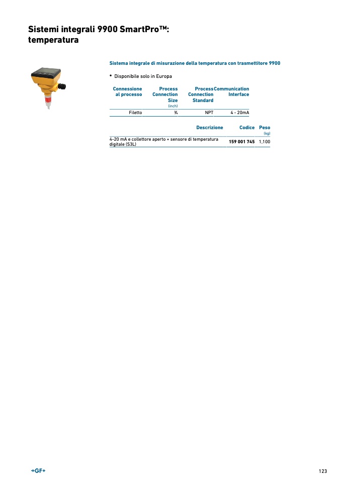 Sistema integrale di misurazione della temperatura con trasmettitore 990