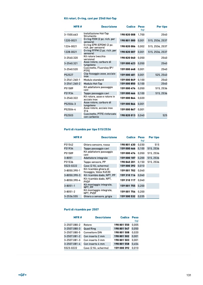Parti di ricambio per tipo 515/2536