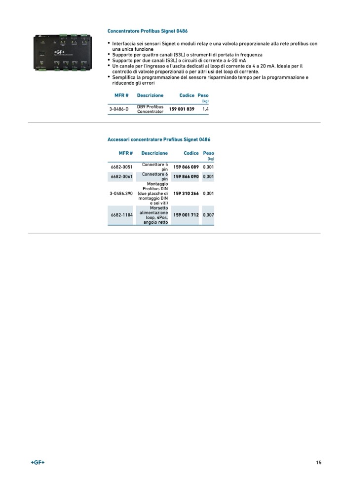 • Interfaccia sei sensori Signet o moduli relay e una valvola proporzionale alla rete profibus co