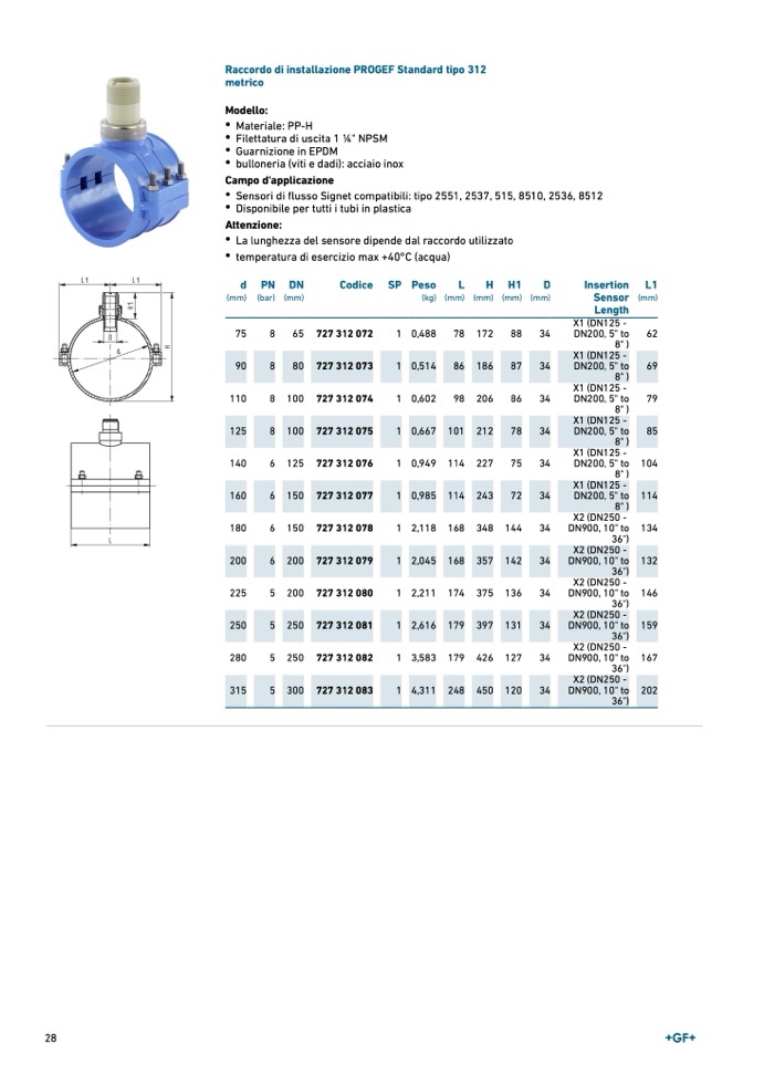 Raccordo di installazione PROGEF Standard tipo 31