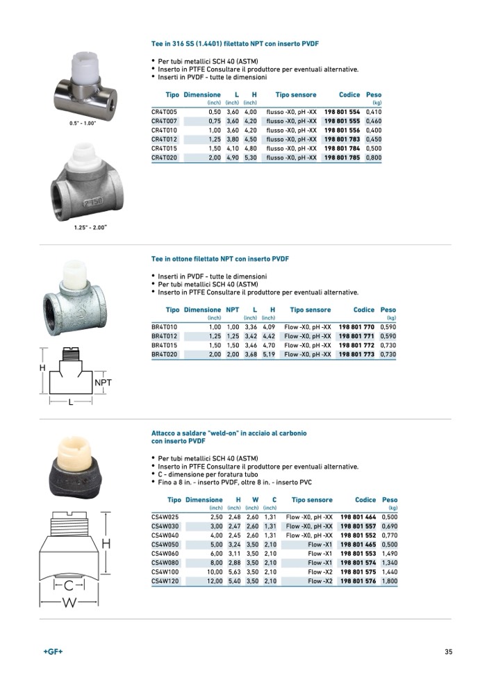 Tee in 316 SS (1.4401) filettato NPT con inserto PVD
