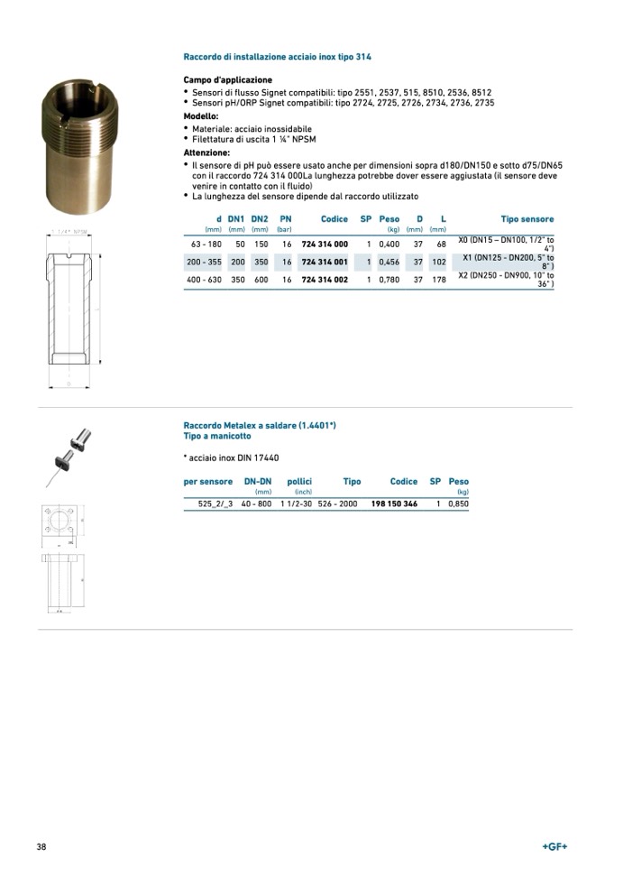 con il raccordo 724 314 000La lunghezza potrebbe dover essere aggiustata (il sensore deve