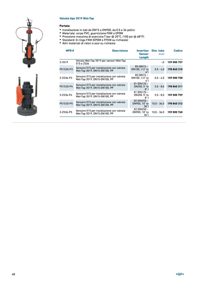 • Installazione in tubi da DN15 a DN900, da 0.5 a 36 pollici