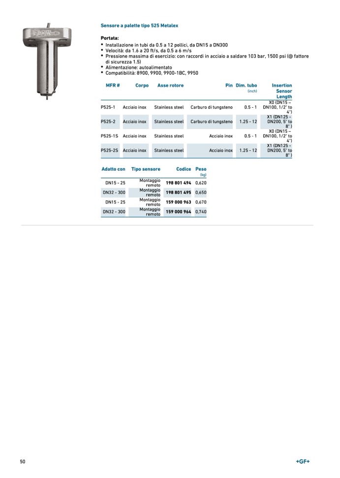 Sensore a palette tipo 525 Metalex