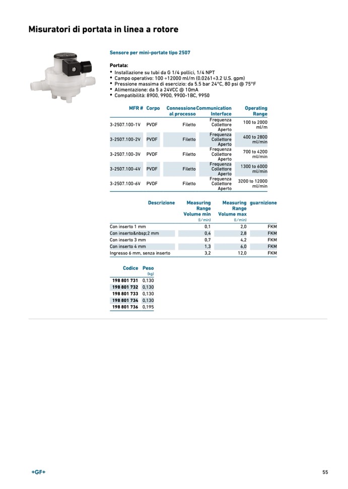 Sensore per mini-portate tipo 250