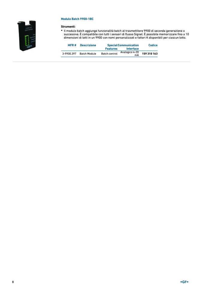 successiva. È compatibile con tutti i sensori di flusso Signet. È possibile memorizzare fino a 1