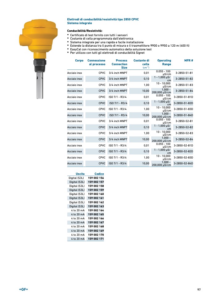 • Per utilizzo con tutti gli elettrodi di conducibilità Signe