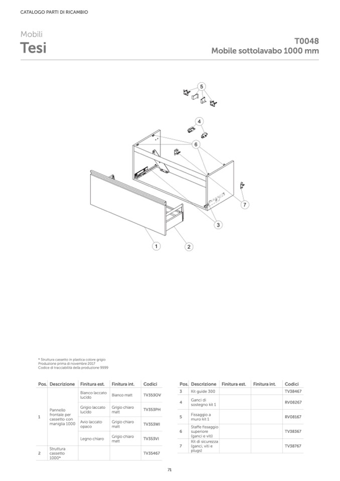* Struttura cassetto in plastica colore grigio
