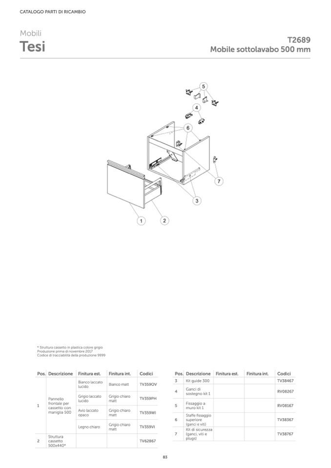 * Struttura cassetto in plastica colore grigio