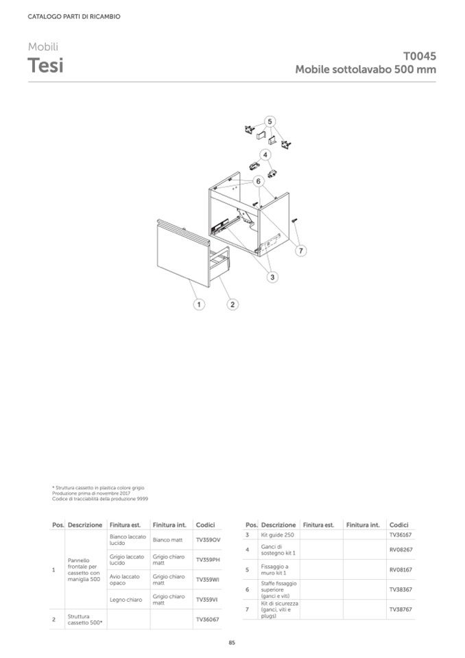 * Struttura cassetto in plastica colore grigio