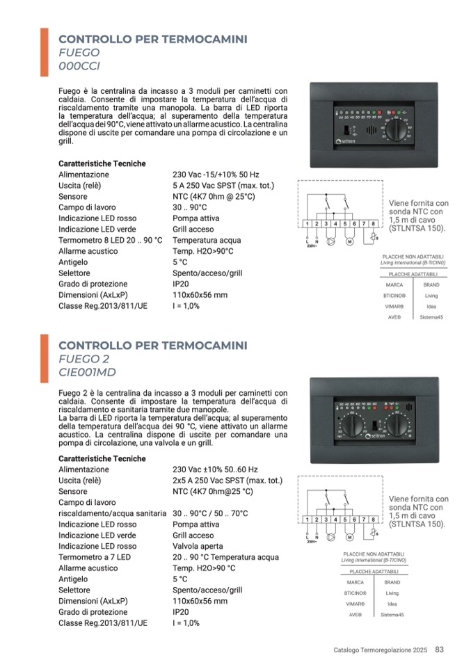Fuego è la centralina da incasso a 3 moduli per caminetti con