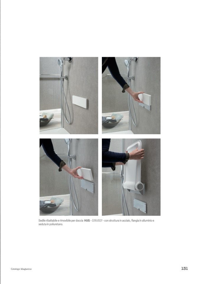 Sedile ribaltabile e rimovibile per doccia HUG - G19UIS01 - con struttura in acciaio, flangia in alluminio e