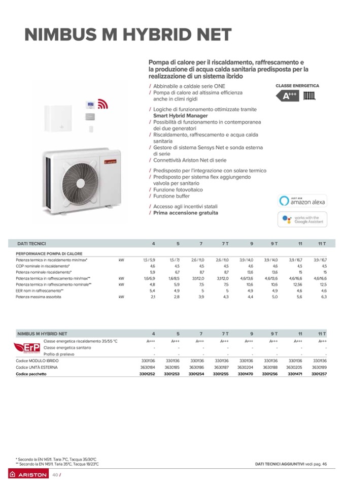 DATI TECNICI AGGIUNTIVI vedi pag. 46