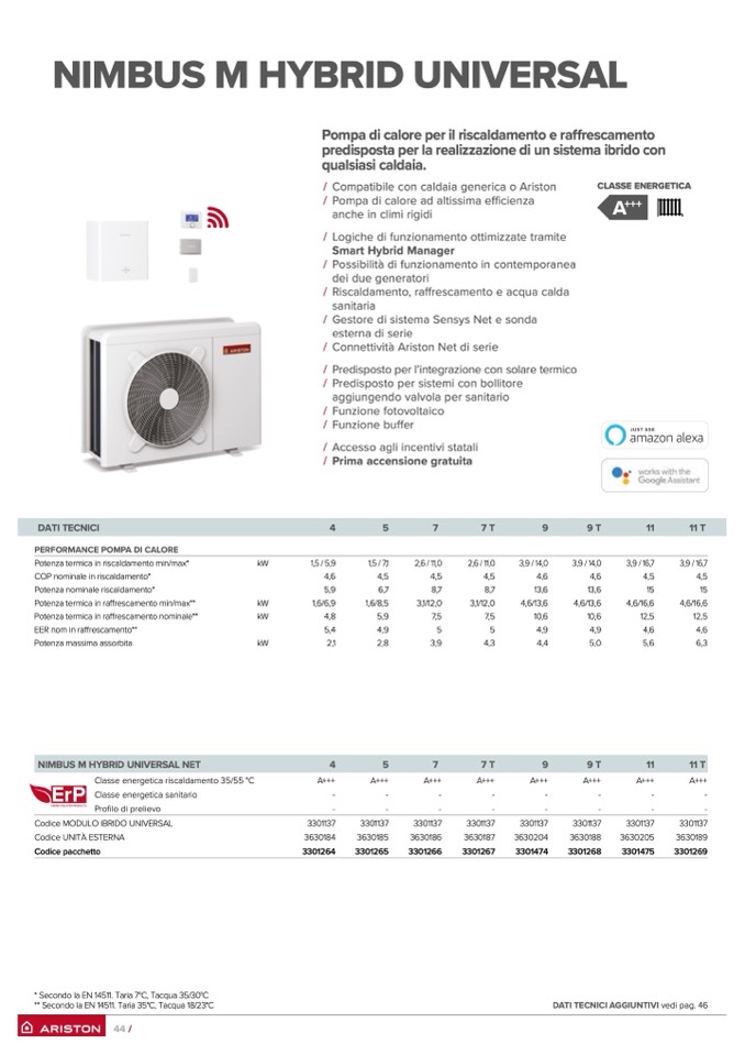DATI TECNICI AGGIUNTIVI vedi pag. 46