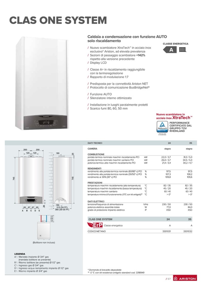 Ritorno bollitore (se presente) Ø 1/2” gas