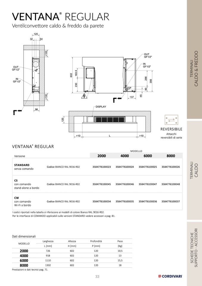 I codici riportati nella tabella si riferiscono ai modelli di colore Bianco RAL 9016-R02.