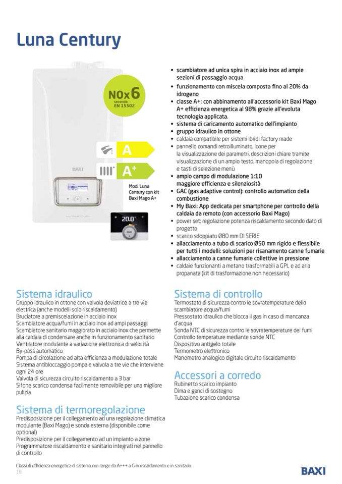 • classe A+: con abbinamento all’accessorio kit Baxi Mago