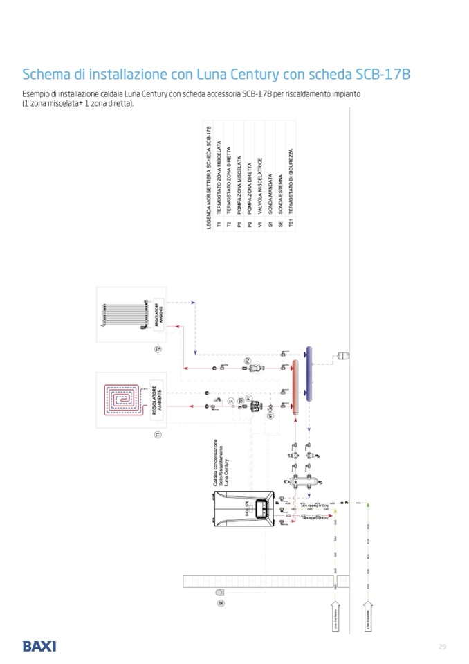 Esempio di installazione caldaia Luna Century con scheda accessoria SCB-17B per riscaldamento impianto