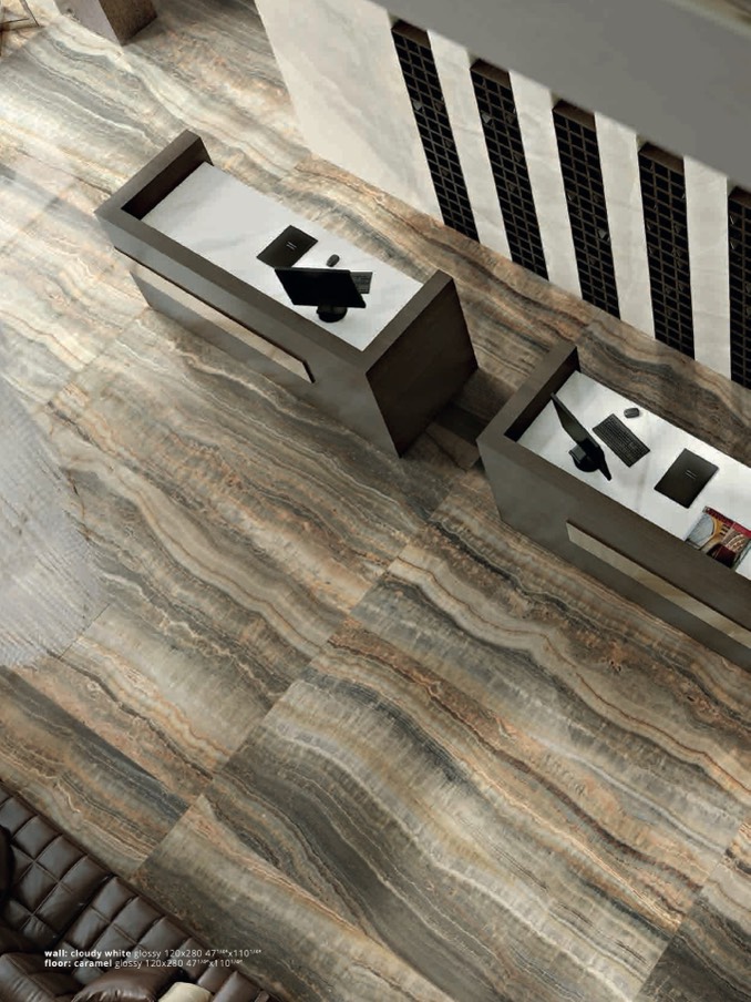 floor: caramel glossy 120x280 471/4”x1101/4”