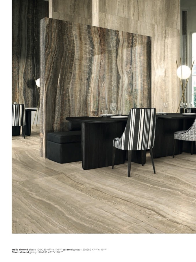 wall: almond glossy 120x280 471/4”x1101/4” caramel glossy 120x280 471/4”x1101/4”