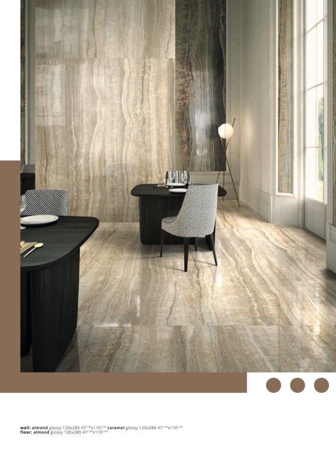 wall: almond glossy 120x280 471/4”x1101/4” caramel glossy 120x280 471/4”x1101/4”