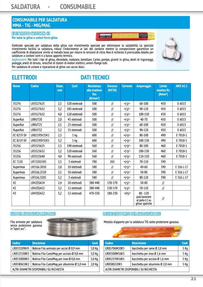 Per saldatura di unione e riparazione di ghise con acciai dolci.