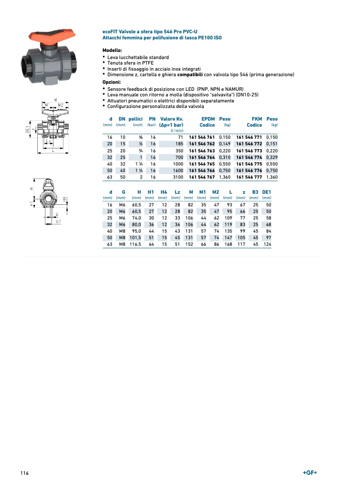 ecoFIT Valvole a sfera tipo 546 Pro PVC-U