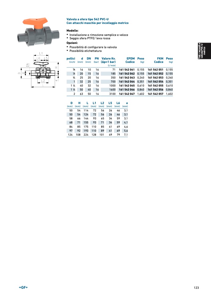 Valvola a sfera tipo 542 PVC-