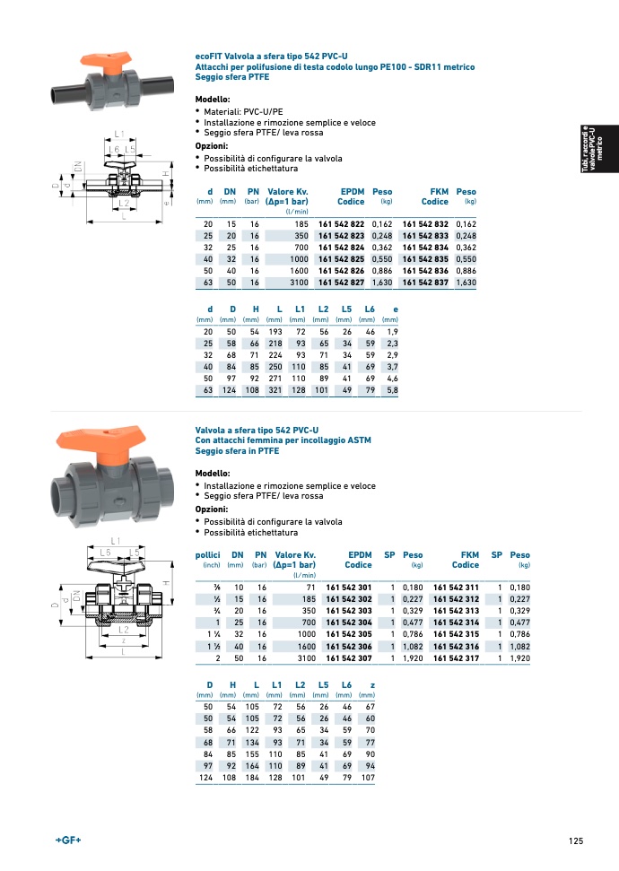 ecoFIT Valvola a sfera tipo 542 PVC-U