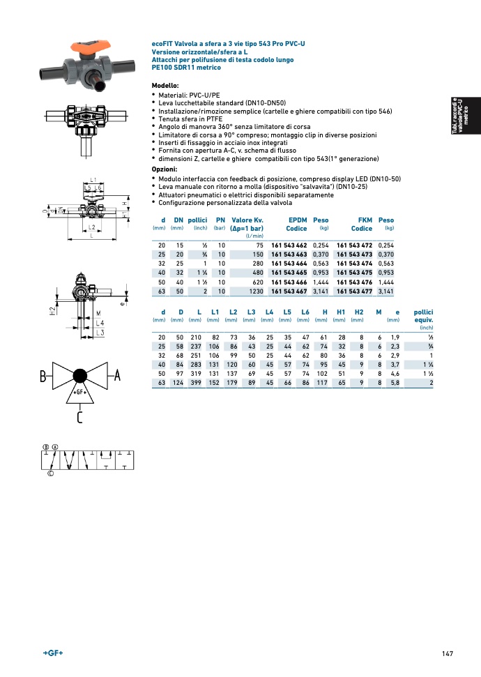 ecoFIT Valvola a sfera a 3 vie tipo 543 Pro PVC-