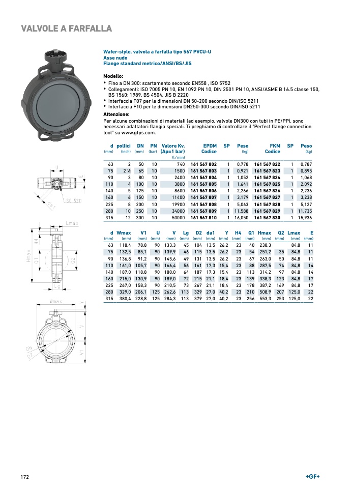 Wafer-style, valvola a farfalla tipo 567 PVCU-
