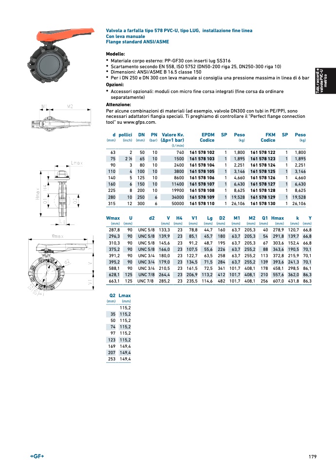 Valvola a farfalla tipo 578 PVC-U, tipo LUG, installazione fine line