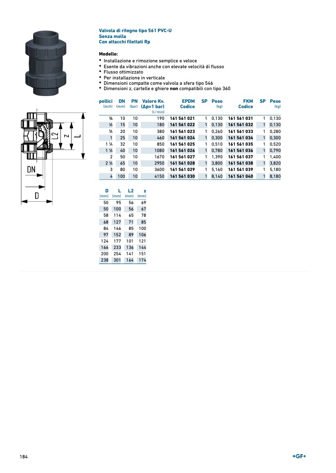Valvola di ritegno tipo 561 PVC-U