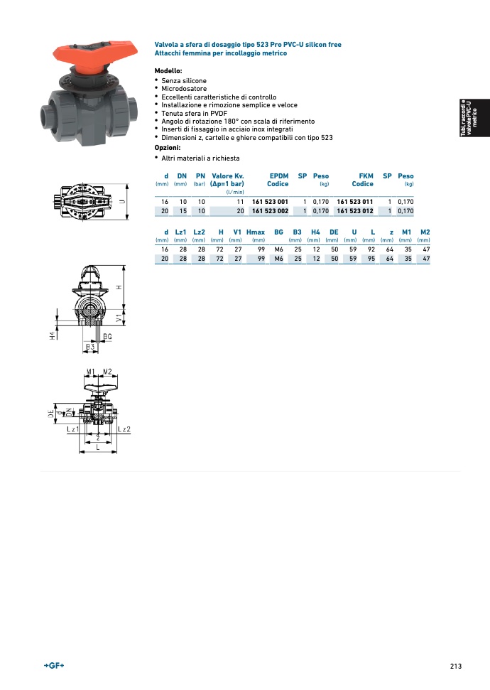 Valvola a sfera di dosaggio tipo 523 Pro PVC-U silicon fre