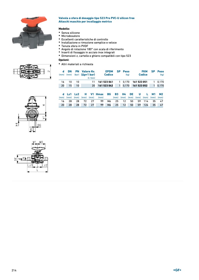 Valvola a sfera di dosaggio tipo 523 Pro PVC-U silicon free