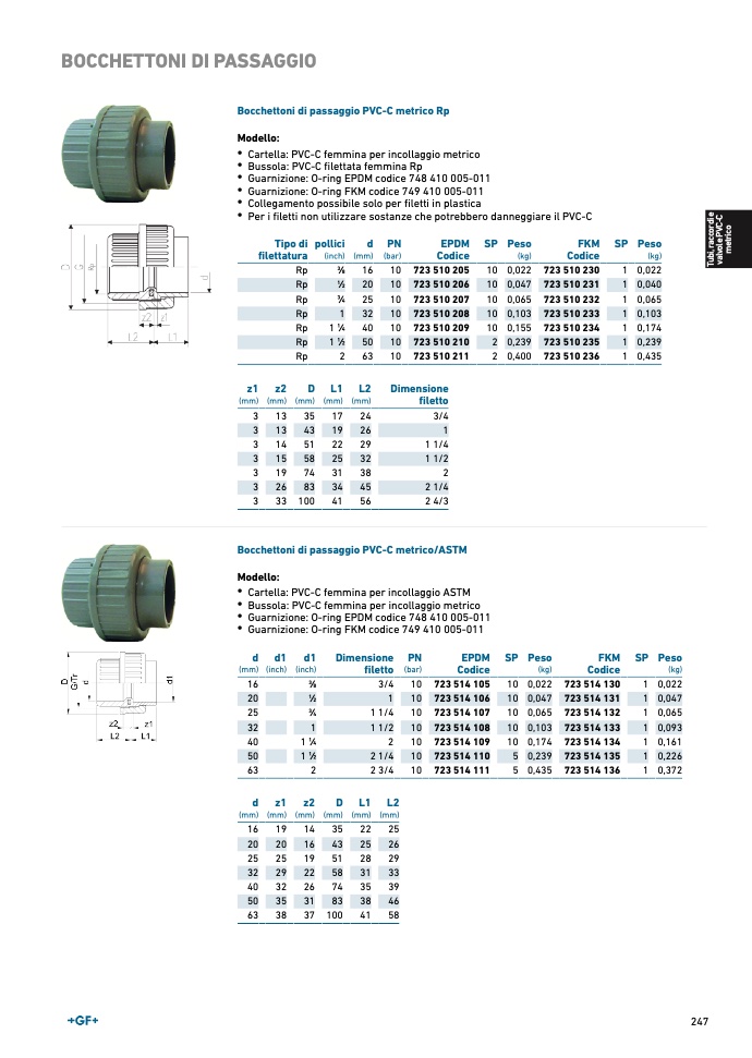 Bocchettoni di passaggio PVC-C metrico/AST