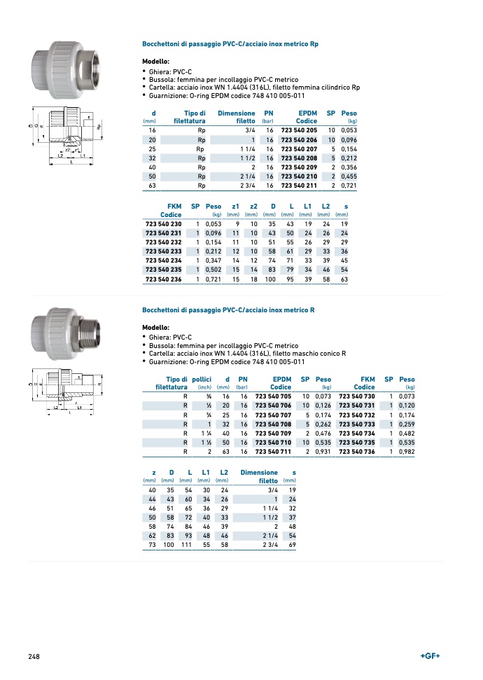 Bocchettoni di passaggio PVC-C/acciaio inox metrico R
