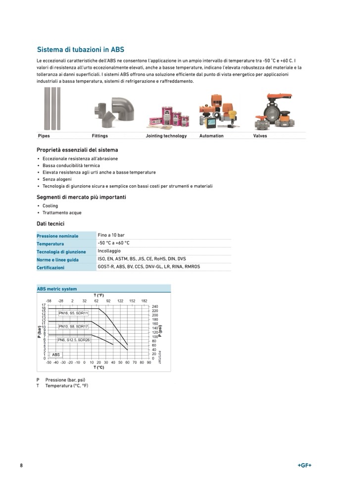 Le eccezionali caratteristiche dell'ABS ne consentono l'applicazione in un ampio intervallo di temperature tra -50 ˚C e +60 C. I