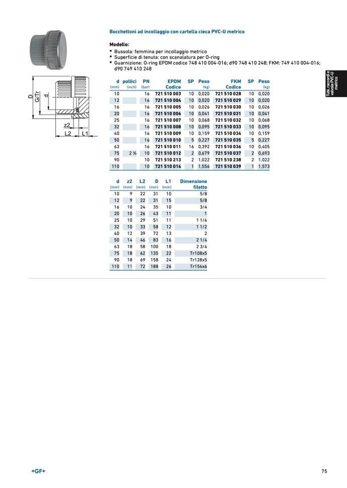 Bocchettoni ad incollaggio con cartella cieca PVC-U metric