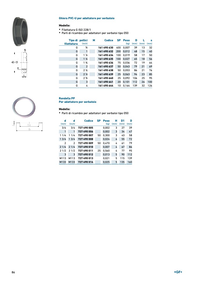 Ghiera PVC-U per adattatore per serbatoio