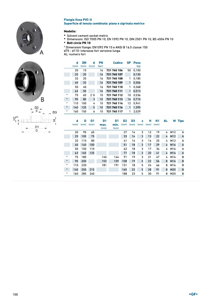 * Dimensioni flange: EN1092 PN 10 e ANSI B 16.5 classe 150