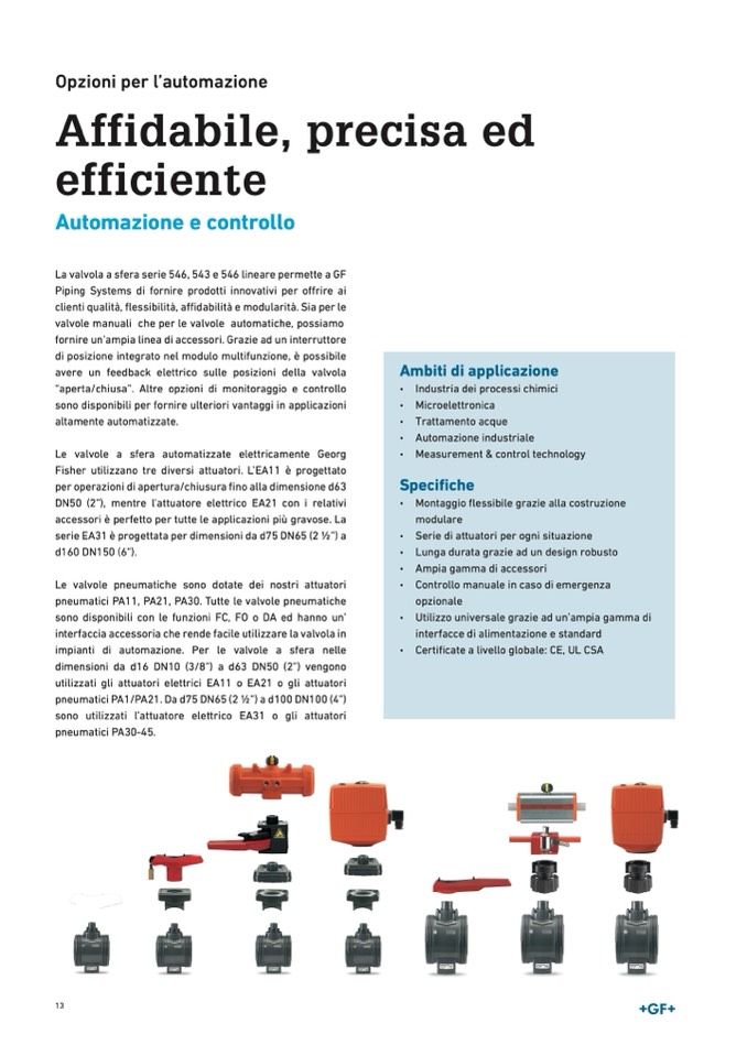 impianti di automazione. Per le valvole a sfera nelle