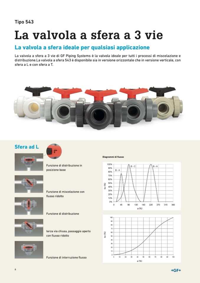 distribuzione.La valvola a sfera 543 è disponibile sia in versione orizzontale che in versione verticale, con