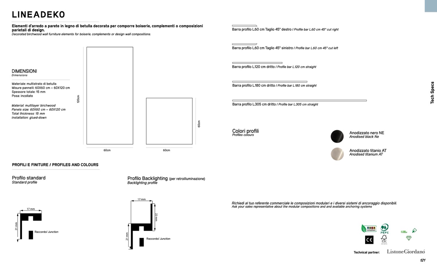 PROFILI E FINITURE / PROFILES AND COLOURS
