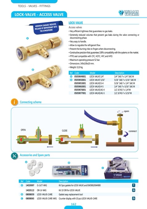 • PTFE seal compatible with CFC, HCFC, HFC and HFO.