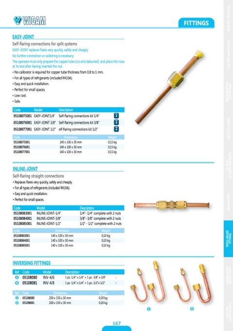 • No calibrator is required for copper tube thickness from 0,8 to 1 mm.