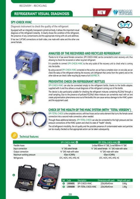 Thanks to its 1⁄4”sae swivel female connection, SPY-CHECK-HVAC can be connected to one’s recovery unit, thus