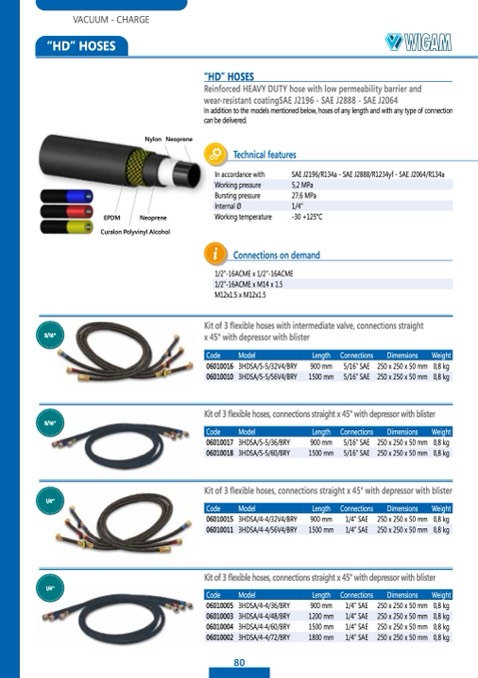 SAE J2196/R134a - SAE J2888/R1234yf - SAE J2064/R134a