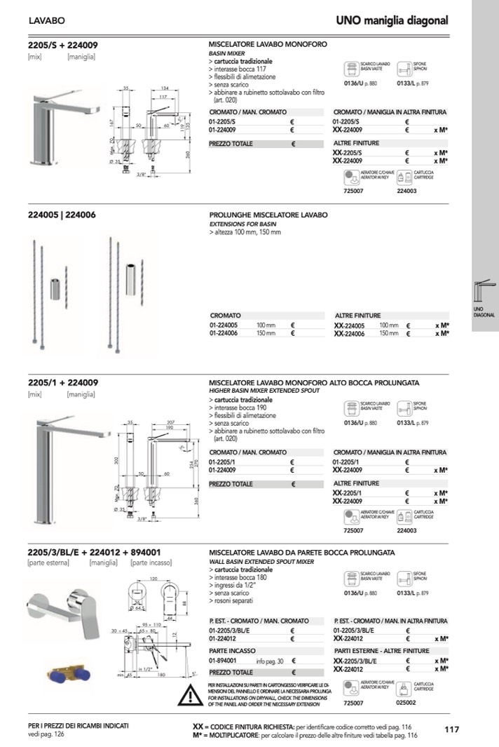 : per calcolare il prezzo delle altre finiture vedi tabella pag. 116