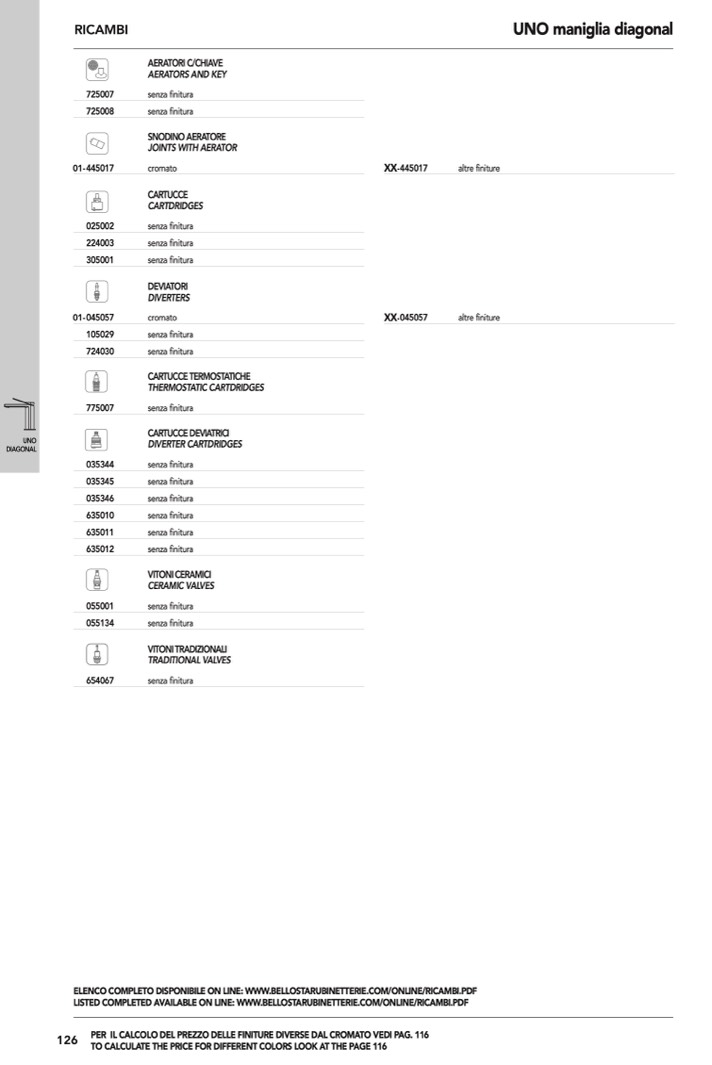 ELENCO COMPLETO DISPONIBILE ON LINE: WWW.BELLOSTARUBINETTERIE.COM/ONLINE/RICAMBI.PDF